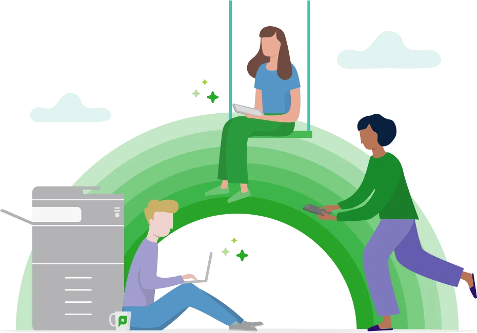 Chega de dor na configuração de servidores ou na configuração de filas de impressão e drivers de impressora. O PaperCut Pocket faz tudo por você, para que os usuários possam imprimir rapidamente todos on-line e com zero barulho.